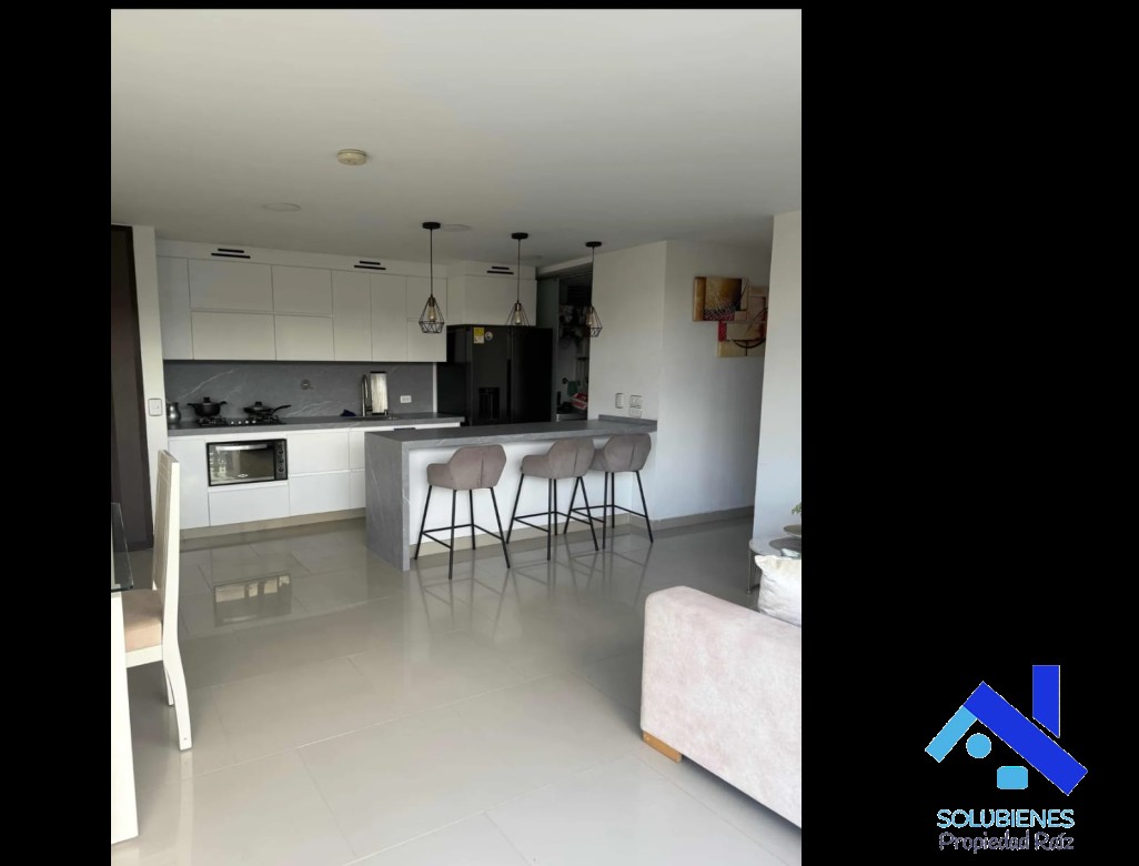 75 metros cuadrados, distribuidos en 2 alcobas, 1 closet, 1 vestier, estudio, 2 baños cabinados en vidrio templado, salón comedor con balcón, cocina integral abierta con mesón en cuarzo y barra tipo americana, zona de ropas, red de gas natural, pisos en cerámica, parqueadero,+ cuarto útil. unidad cerrada con portería las 24 horas y circuito cerrado de tv, ascensor, shut de basuras, citófono, parqueadero de visitantes, salón social, juegos infantiles, zonas verdes, piscina, gimnasio, canchas. ...