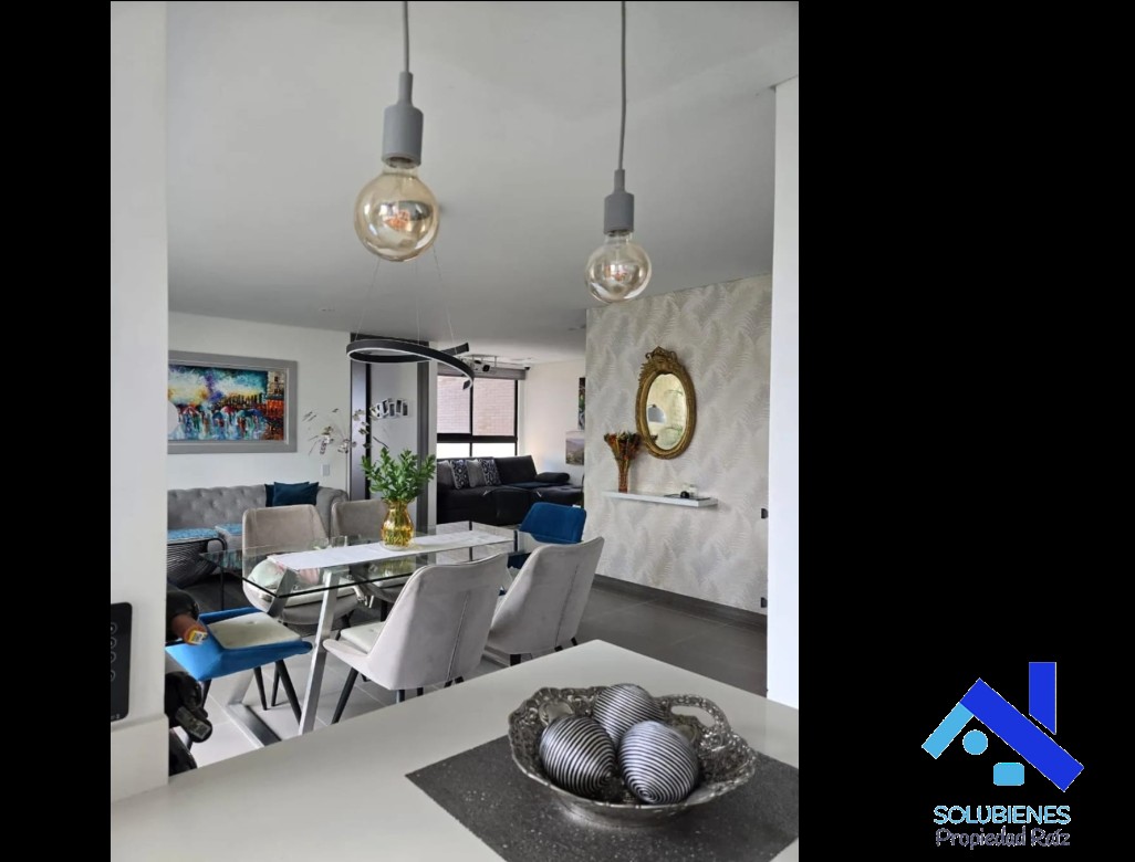 57 metros cuadrados, distribuidos en 3 alcobas, 3 closet, 2 baños cabinados en vidrio templado salón comedor con balcón, cocina integral abierta con mesón en cuarzo, zona de ropas, red de gas natural, pisos en porcelanato, parqueadero. unidad cerrada con portería las 24 horas y circuito cerrado de tv, ascensor, citófono, shut de basuras, zonas verdes, juegos infantiles, salón social, parqueadero de visitantes, piscina, cancha. ubicado cerca del colegio comercial de envigado. solubienes ...