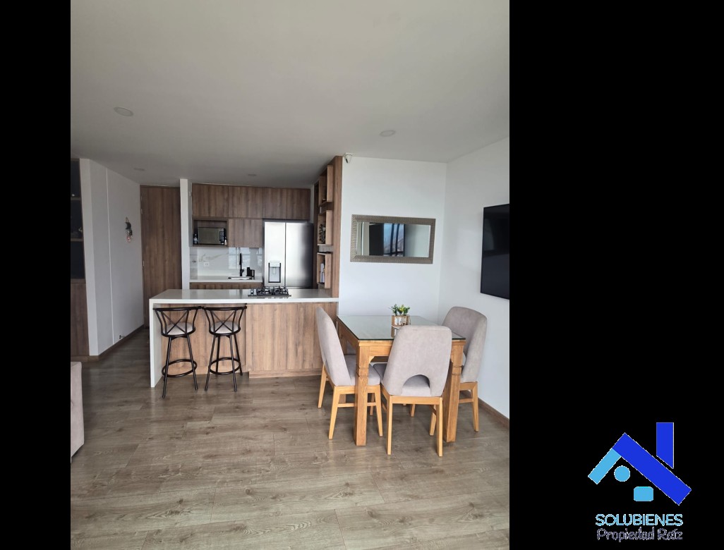 70 metros cuadrados, distribuidos en 3 alcobas, 3 closet, 2 baños cabinados en vidrio templado, salón comedor, cocina integral abierta con mesón en aluminio y barra tipo americana, zona de ropas, red de gas natural, pisos en cerámica. edificio con citófono, shut de basuras, escaleras de emergencia. ubicado cerca a la cancha del dorado solubienes propiedad raíz sas ...